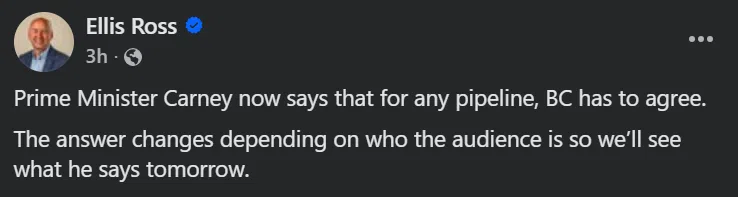 Ellis Ross, the sitting Member of Parliament for Skeena - Bulkley Valley, has called out Prime Minister Mark Carney's Government for flip flopping on its stance about on whose consent is needed for Al...