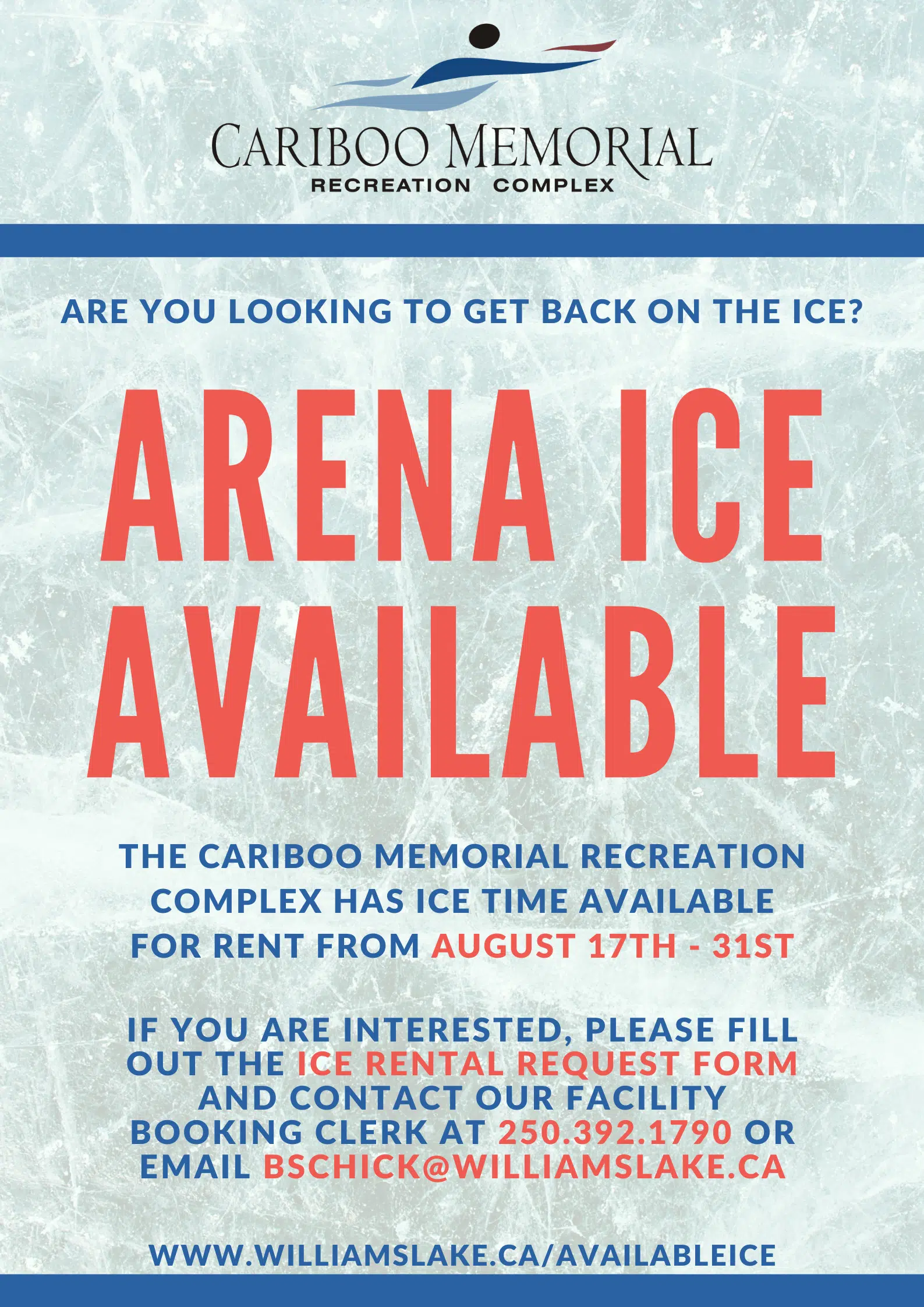 Some good news for people looking to hit the ice this summer. The Cariboo Memorial Recreation Complex will be reopening for people to reserve ice time starting on Aug. 17. The reservations will last u...
