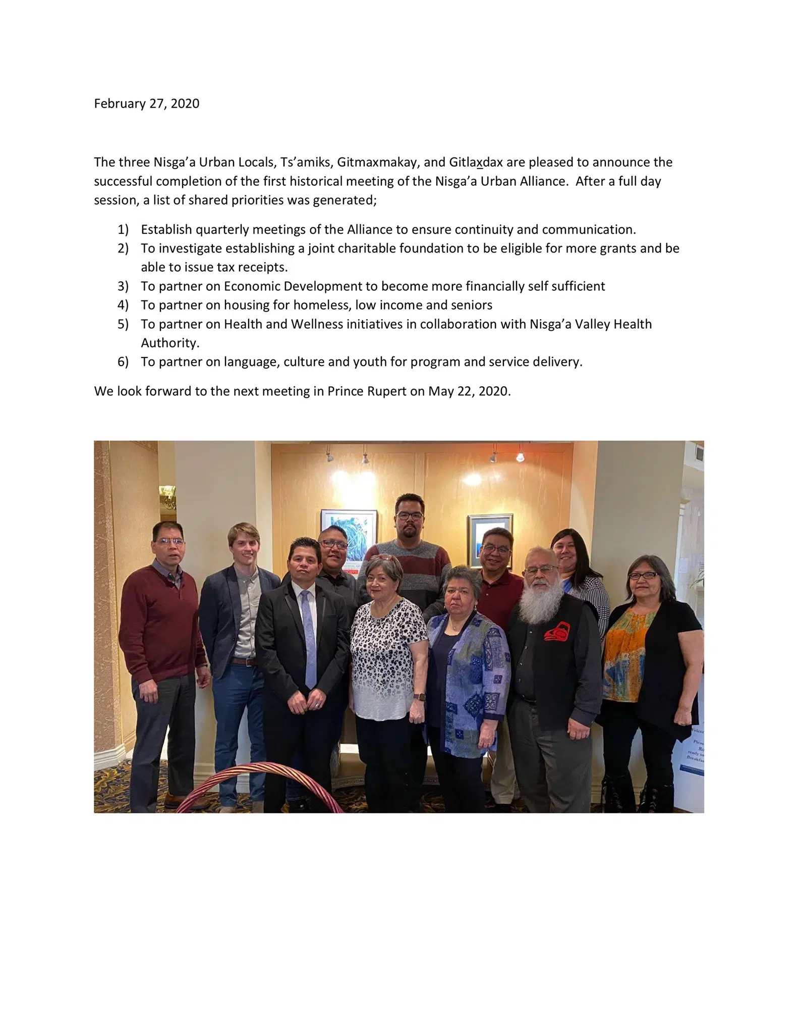Successful completion of the first meeting of the Nisga'a Urban Alliance