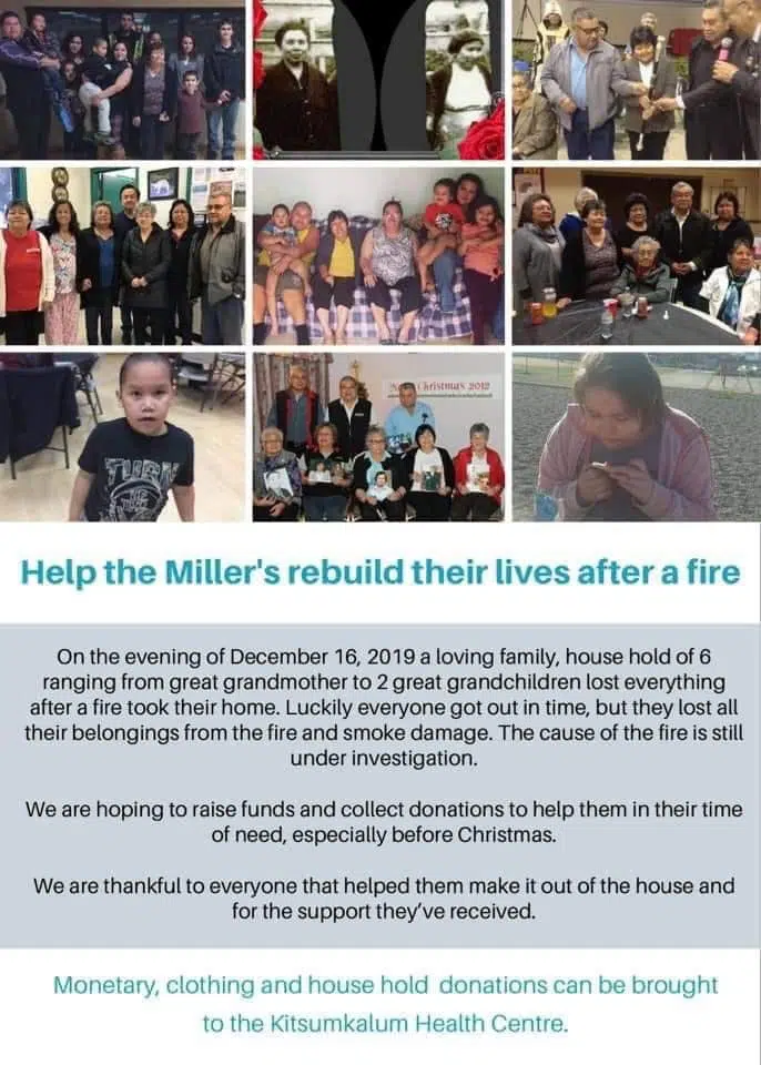 A Kitsumkalum family is in need after fire destroyed their home Monday night. The Millers, a family of six ranging from a great grandmother to two great grandchildren, lost their home when flames ripp...