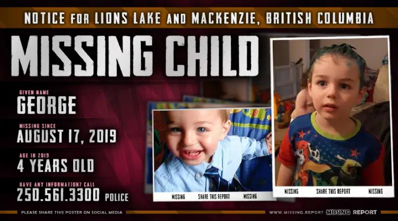 RCMP and Search and Rescue crews are scouring an area near Mackenzie four a missing four-year-old. The child named George was berry picking with his parents in the Lions Lake area Saturday when he bec...